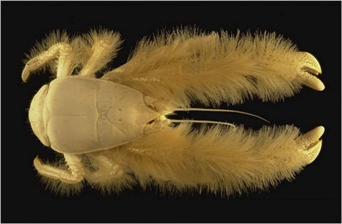 Cua Yeti hay Cua cổ đại sống ở vùng biển có độ sâu lên tới 1.500km dưới đáy biển ở Chile. Chúng sở hữu 2 chiếc càng to lớn và vô cùng đặc biệt với những chiếc lông dài có chức năng bẫy vi khuẩn để làm thức ăn