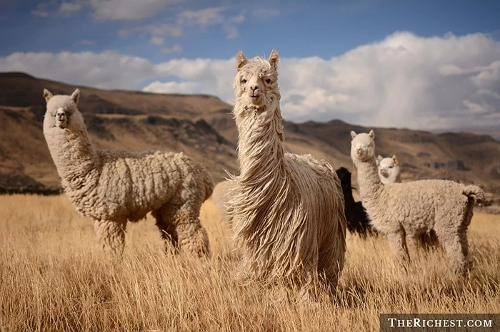 Lạc đà Alpaca. Là một loài động vật được thuần hóa thuộc họ Lạc đà Nam Mỹ, Alpaca có vẻ bề ngoài gần giống một con llama (lạc đà không bướu) nhỏ. Chúng được nuôi để lấy lông và làm len, dệt vải