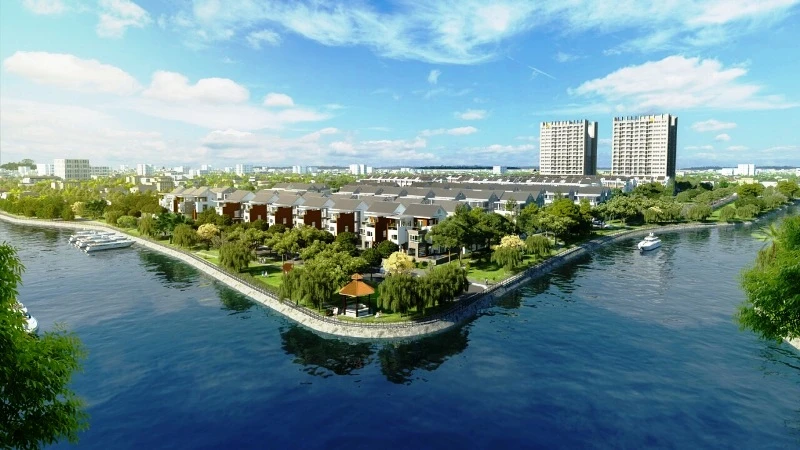 Dự án có diện tích hơn 25ha, được quy hoạch theo mô hình đô thị sinh thái ven sông, mật độ xây dựng chỉ 18,6% với các phân khu như căn hộ và biệt thự cao cấp, khu văn phòng cho thuê, trung tâm thương mại, khách sạn cùng hệ thống tiện ích, công viên cây xanh ven sông đồng bộ.