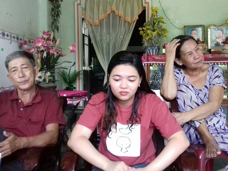 Phạm Thị Ngọc Hân cùng ông bà xúc động khi nhắc lại quá khứ 10 năm trước. Ảnh: HẢI DƯƠNG