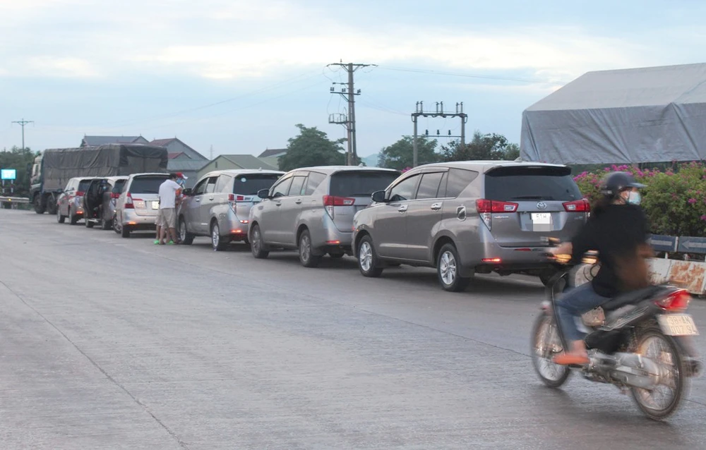 Các ô tô mang biển kiểm soát TP.HCM và Đồng Nai dừng lại khai báo y tế ở chốt kiểm soát đầu cầu Bến Thủy 2 (huyện Hưng Nguyên, Nghệ An).