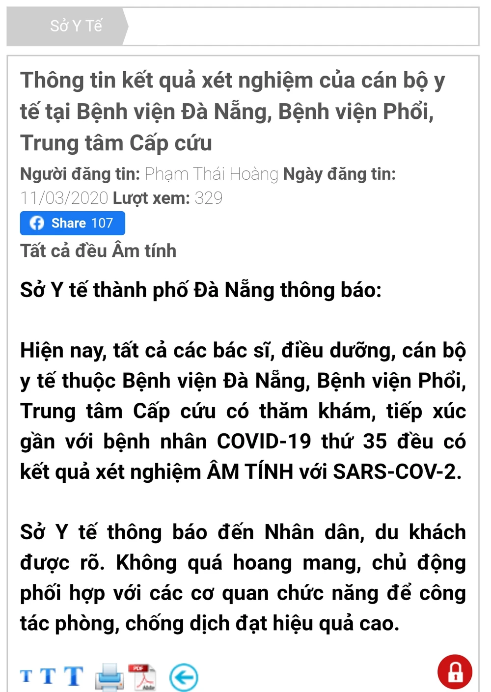 Thông báo của Sở Y tế Đà Nẵng tối 11-3.