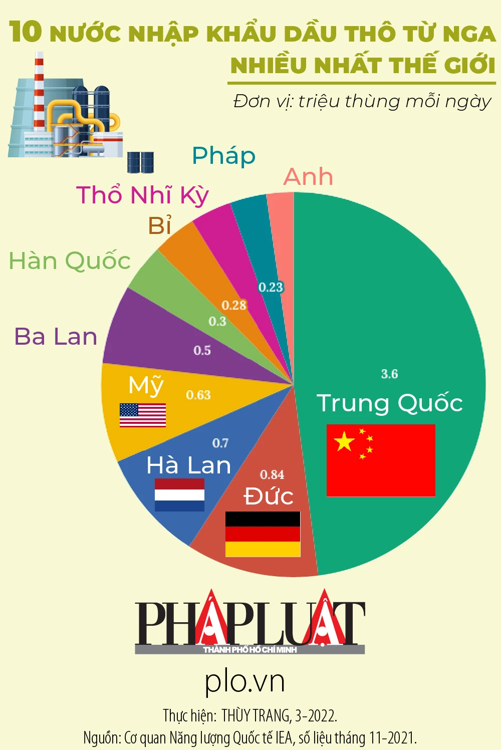 10 nước nhập khẩu dầu thô từ Nga nhiều nhất thế giới