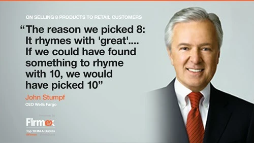 John Stumpf, CEO của Wells Fagor khi nói về việc bán bộ 8 sản phẩm cho khách hàng bán lẻ: “Lý do chúng tôi chọn số 8 (Eight) là vì nó cùng vần với từ "Tuyệt vời" (Great). Nếu chúng tôi có thể tìm được từ gì đó cùng vần với số 10, chúng tôi sẽ chọn 10”.
