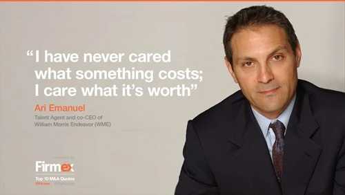 Ari Emanuel, người tìm kiếm tài năng kiêm CEO của William Morris Endeavor (WME): “Tôi không bao giờ quan tâm đến giá cả của một thứ gì đó, tôi chỉ quan tâm đến giá trị của nó”.