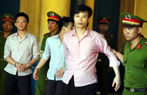Bị cáo Hoàng Văn Tính (phía trước) bị dẫn giải về trại tạm giam sau phiên xử sáng 24-12. Ảnh: P.LOAN