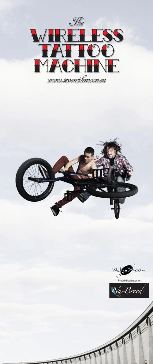 Tại Hà Lan, dịch vụ xăm hình 7th Moon đã có cách thể hiện rất riêng về công nghệ xăm không dây của mình. Người nghệ sĩ như đang bám dính khách hàng cho dù họ đang làm gì đi chăng nữa.