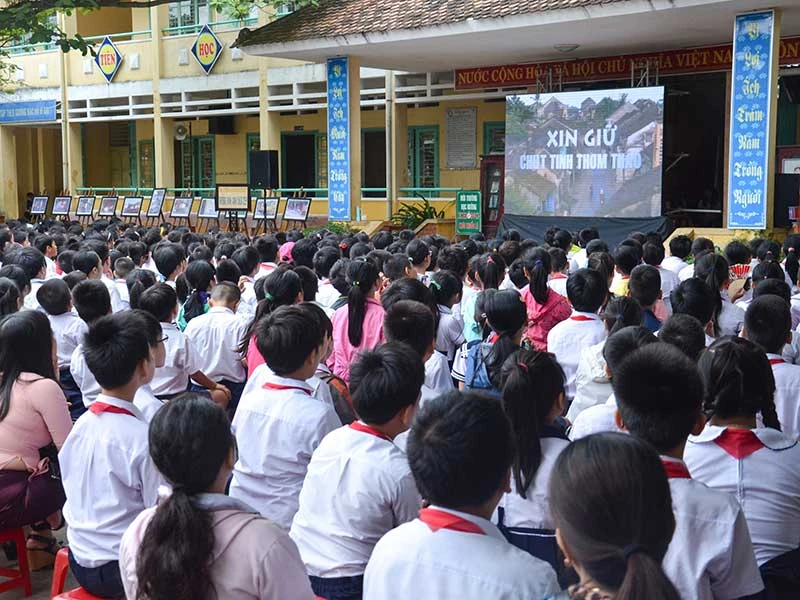 Trung tâm VH-TT TP Hội An đã tổ chức tuyên truyền cho học sinh ở các trường học về đề án này. Ảnh: HUY TRƯỜNG