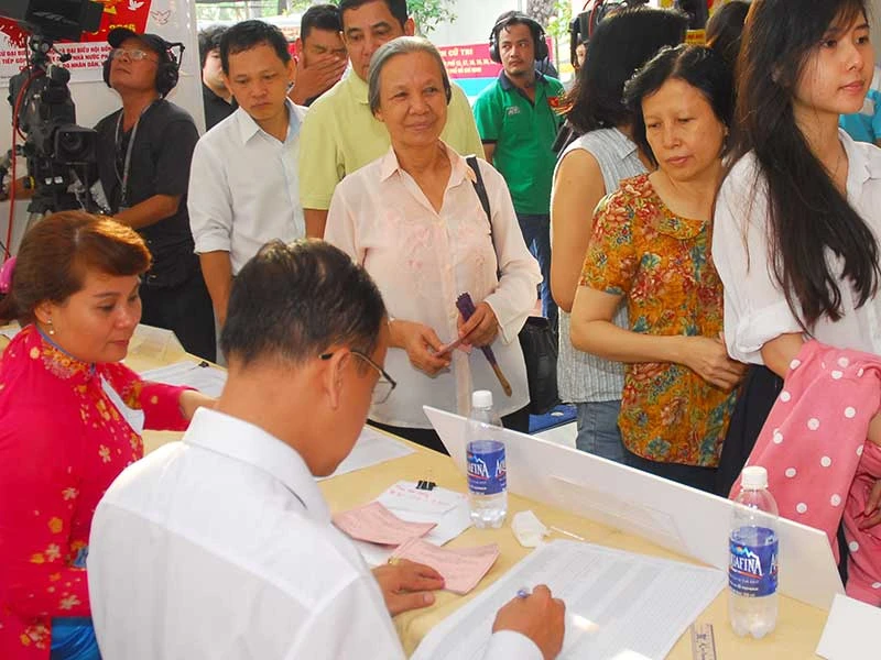 Người dân TP.HCM nô nức đi bầu đại biểu Quốc hội khóa XIV và đại biểu HĐND các cấp nhiệm kỳ 2016-2021. Ảnh: HTD