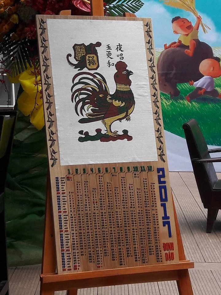 Bên cạnh đó, trong buổi ra mắt “Lịch khuyến đọc đồng hành cùng Sách hóa nông thôn”, một bộ lịch khuyến học đặc biệt bằng tranh Đông Hồ hình gà trống với bản làm bằng giấy dó và khắc gỗ do nghệ nhân tên tuổi nhất làng tranh thực hiện đã được đưa ra bán đấu giá.g