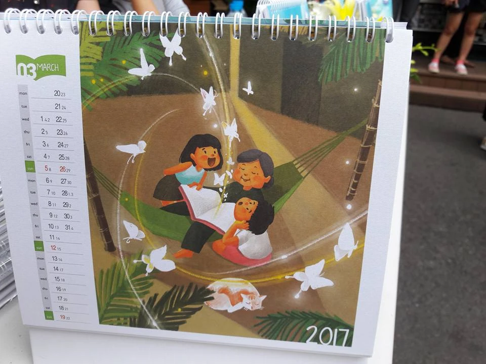Với mong muôn khuyến khích trẻ em cả thành thị và nông thôn đọc sách, Công ty Lịch Xuân Phương Nam đã đặt hàng họa sĩ vẽ riêng những bức tranh sinh động, gần gũi mà bay bổng, êm đềm về tuổi thơ với những câu chuyện bên trang sách để làm bộ lịch Chắp cánh ước mơ.