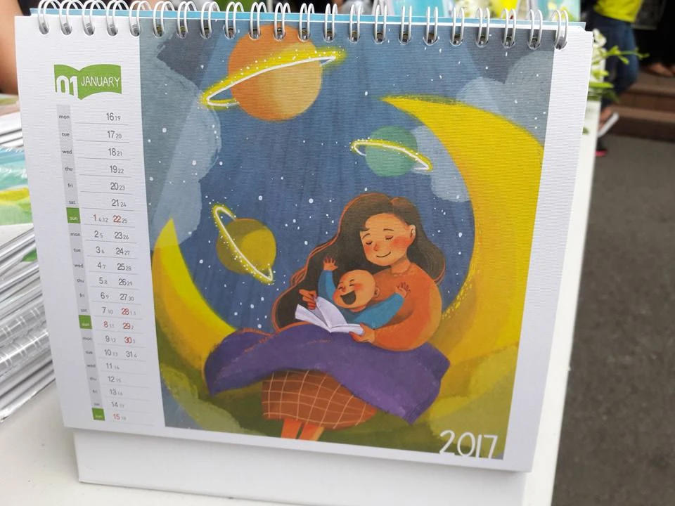 Bộ lịch với các tranh vẽ này nhằm kích thích trẻ đọc sách khi nó được treo trước bàn học hay để trên bàn học của trẻ…