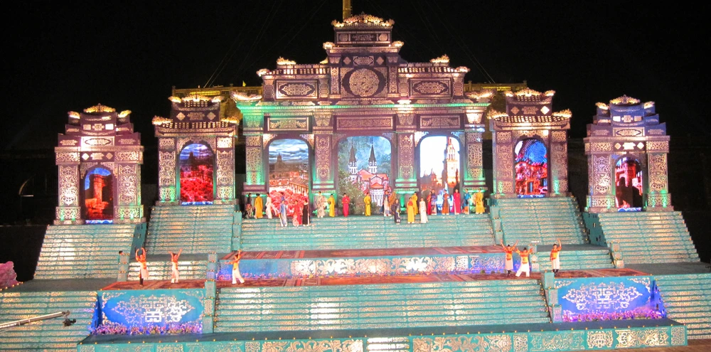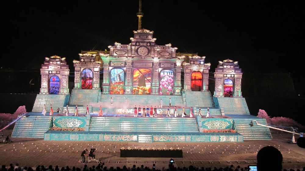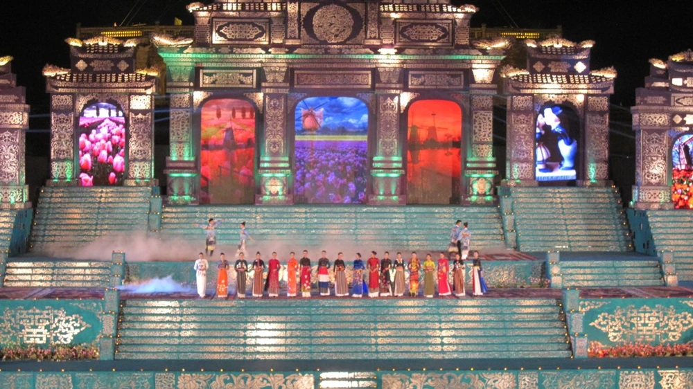 Tối 14-4, tại Kỳ Đài- quảng trường Ngọ Môn (Đại Nội Huế) lễ hội áo dài đã chính thức khai mạc với chủ đề “Thế giới trong tà áo dài Việt”.