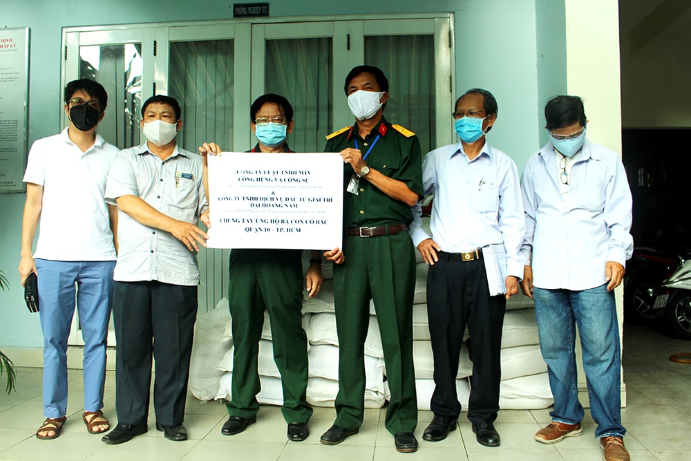 Chiều 14-4, Hội Cựu chiến binh - Sở Tư pháp TP.HCM cùng với luật sư Phạm Công Hùng, Giám đốc Công ty TNHH Luật Công Hùng và cộng sự đã trao 1 tấn gạo cho Trung tâm Trợ giúp pháp lý nhà nước (Sở Tư pháp TP.HCM) để giúp đỡ bà con nghèo.