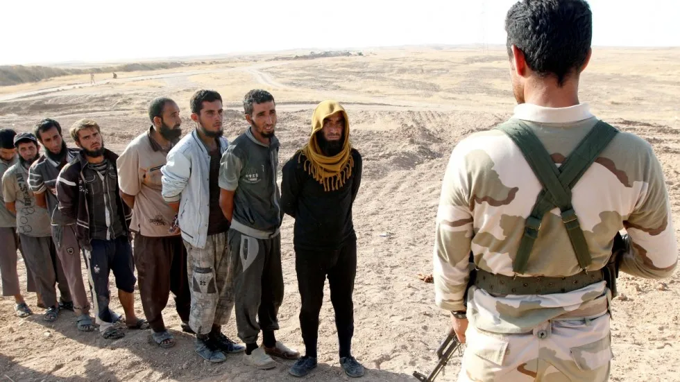 Các thành viên IS đầu hàng lực lượng dân quân người Kurd ở Hawija, Tây Nam Kirkuk, Iraq. Ảnh: SCMP
