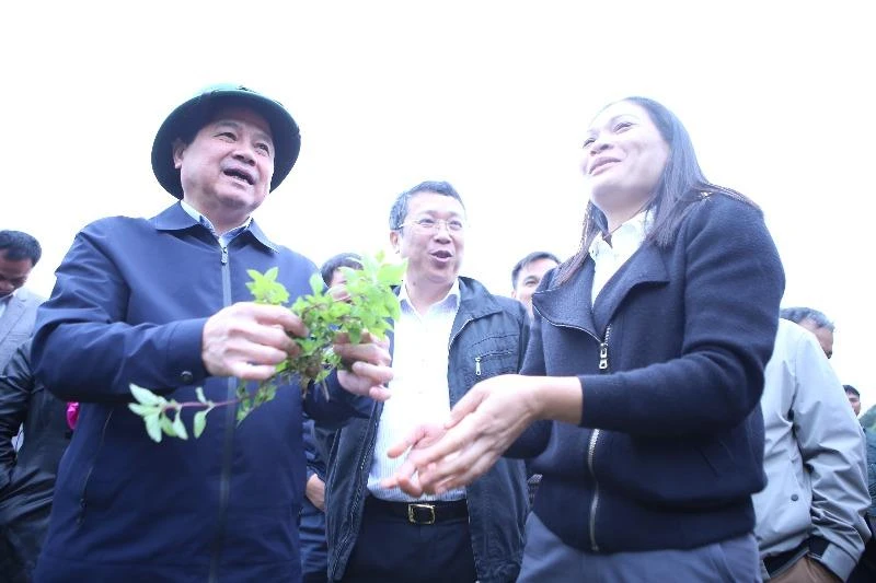 Ngày 14-12, Thứ trưởng Bộ NNPTNT Lê Quốc Doanh dẫn đầu đoàn công tác đi thăm, kiểm tra tình hình sản xuất, chế biến và đóng gói thạch đen tại huyện Tràng Định (Lạng Sơn). Ảnh: VĂN GIANG