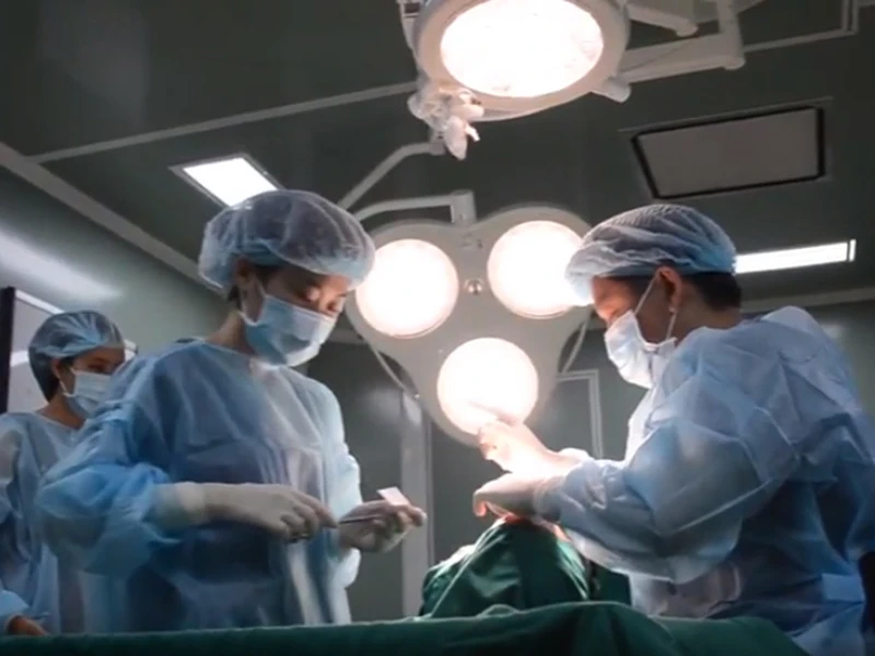 Các bác sĩ đang thực hiện ca nâng ngực. Ảnh: TRẦN NGỌC