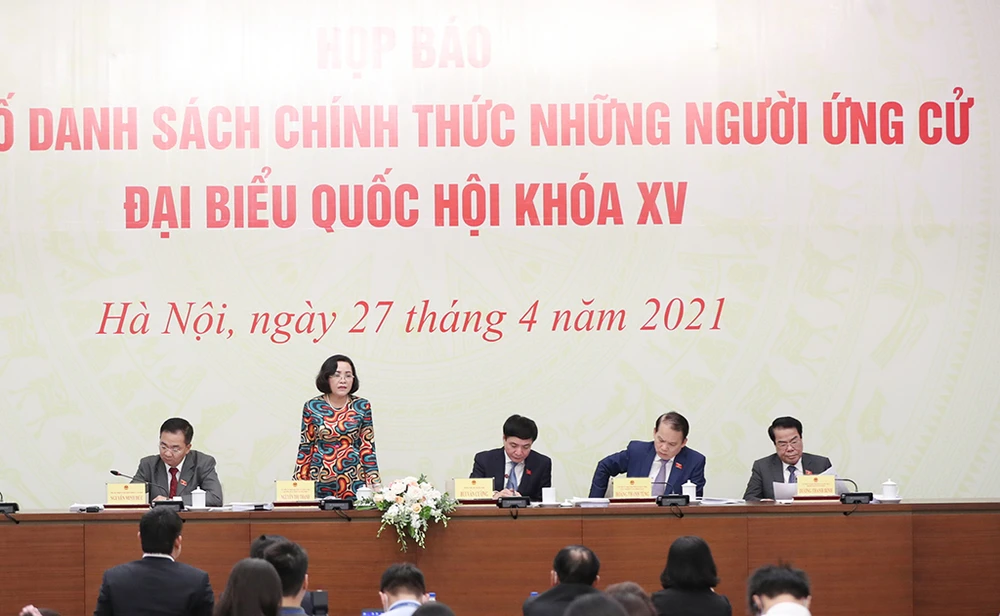 Cuối giờ chiều 27-4, tại Hà Nội, Hội đồng Bầu cử quốc gia tổ chức họp báo công bố danh sách chính thức những người ứng cử đại biểu Quốc hội (ĐBQH) khóa XV.