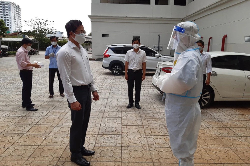 Lãnh đạo quận 12 thăm trạm y tế lưu động tại phường Thạnh Xuân. Ảnh HT