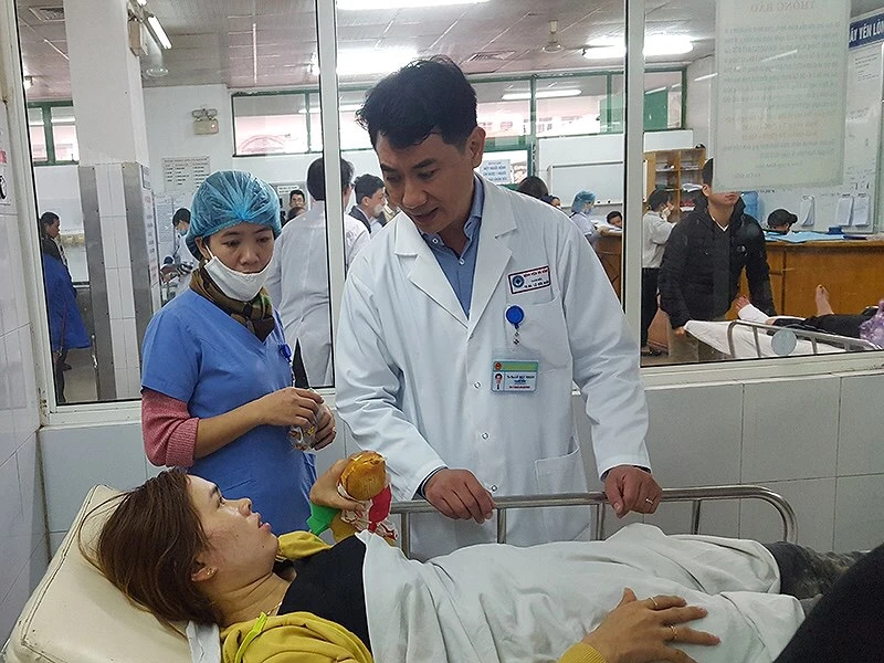Bác sĩ Lê Đức Nhân trực tiếp thăm hỏi, chỉ đạo việc điều trị cho nạn nhân vụ lật xe ngày 12-2.