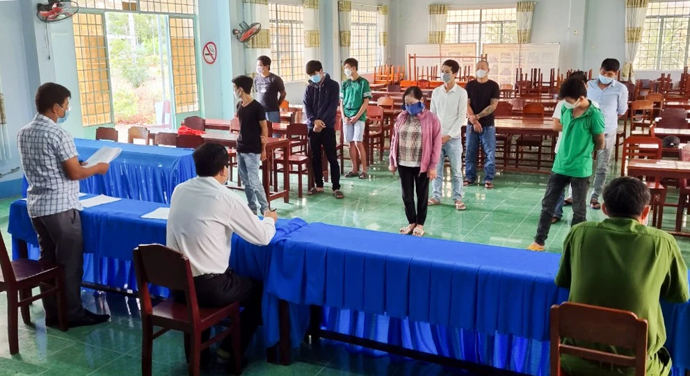 Trước đó, trưa 23-7, Công an xã Thạnh Đông B (huyện Tân Hiệp) đã bất ngờ kiểm tra và bắt quả tang 11 người đang tụ tập tại một ngôi nhà ở ấp Đông Thạnh để đánh bài.