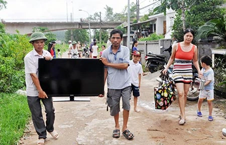 Người dân thị trấn Tiên Yên, huyện Tiên Yên, Quảng Ninh chạy lũ ngày 17-9. Ảnh: CTV