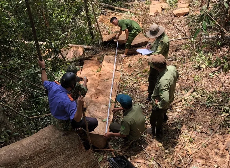 Khi thấy lực lượng chức năng, nhóm người này đã bỏ trốn vào rừng. Tại hiện trường có ba cây gỗ bị cưa hạ, được cắt khúc thành chín hộp gỗ, có khối lượng khoảng gần 15m3.