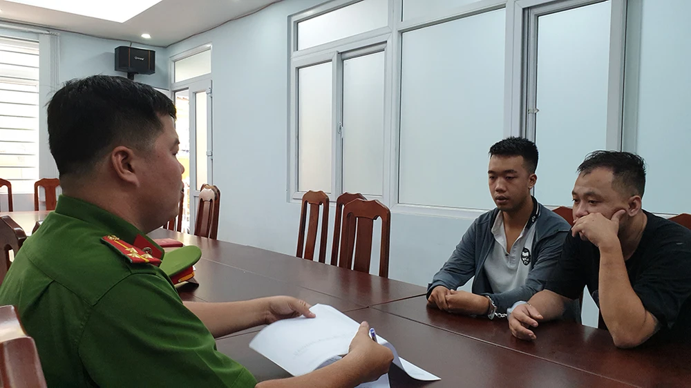 Công an lấy lời khai với Hùng và Bách. Ảnh: NT