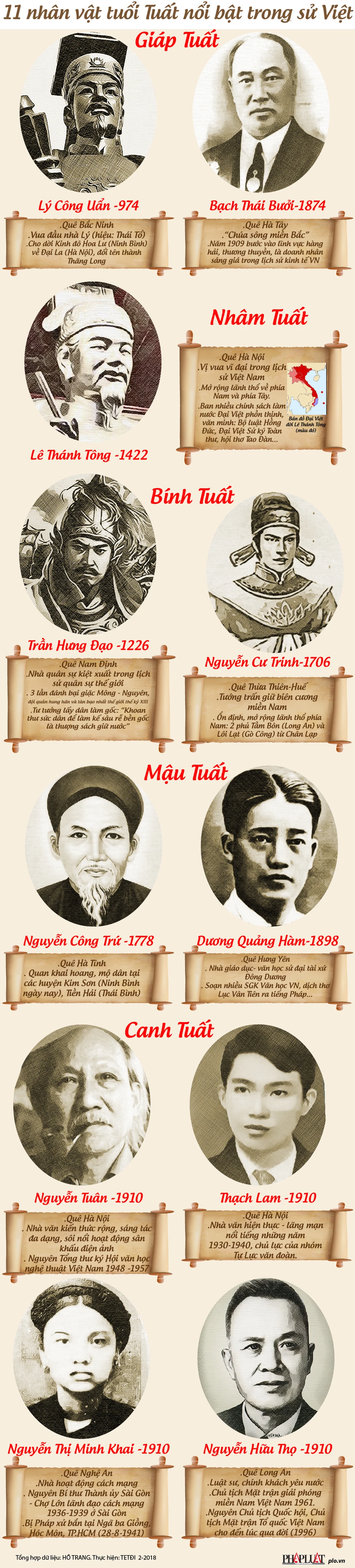 (PLO)- Những người tuổi Tuất vốn thông minh, có ý chí chiến đấu kiên cường. Năm mới Mậu Tuất, cùng điểm lại một số danh nhân tuổi Tuất nổi trội trong lịch sử Việt Nam.