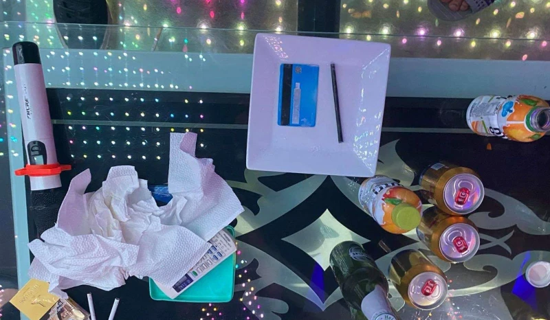 Ngay tại chỗ, lực lượng công an đã thu giữ một đĩa sứ, một ống nhựa đang còn dính bột trắng và một số dụng cụ khác dùng để sử dụng ma túy. Cơ quan công an cũng tiến hành test nhanh đối với các đối tượng trên, lực lượng công an phát hiện 10/11 đối tượng dương tính với Ketamine và các chất trong nhóm ATS (mathamphetamine, amphetamine và MDMA).