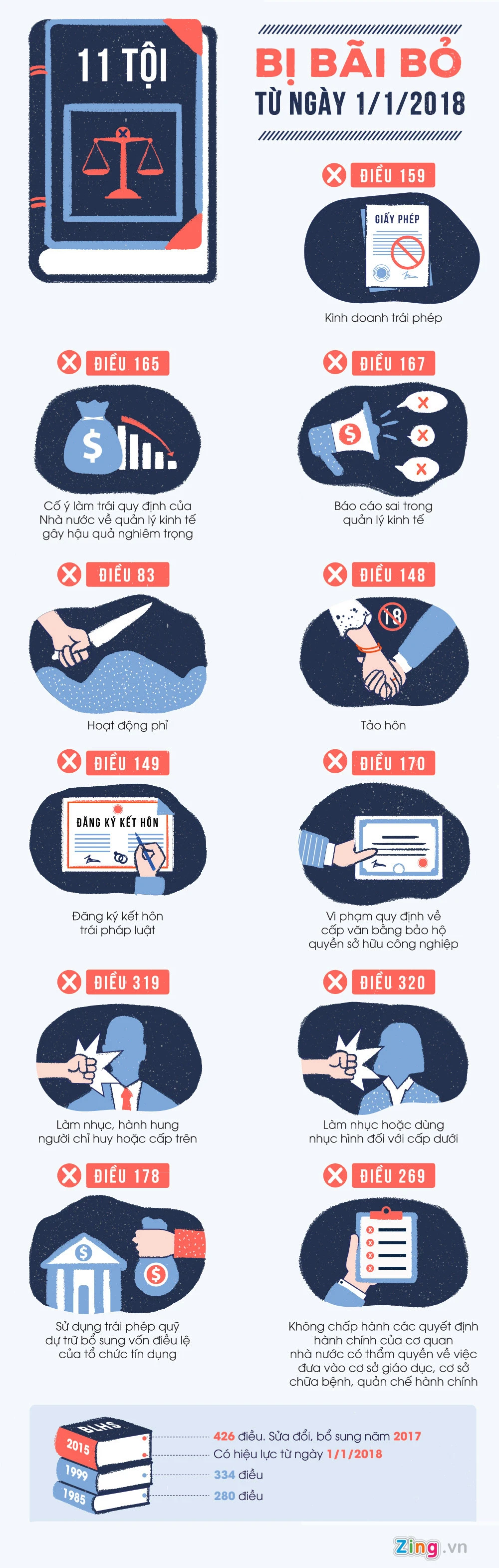 11 tội bị bãi bỏ từ ngày 1-1-2018