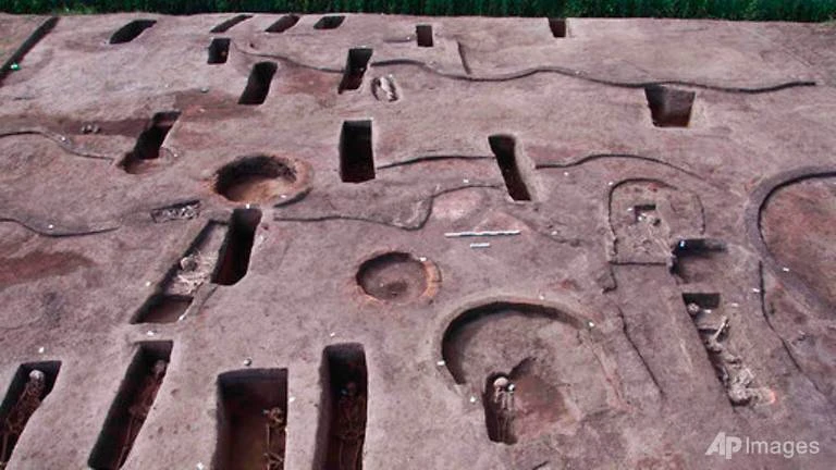 Một số ngôi mộ còn chứa hài cốt người của người trưởng thành và trẻ em, cùng các đồ tùy táng và đồ gốm.