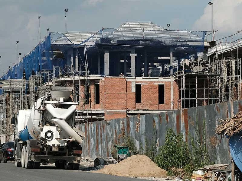 Một góc khu biệt thự xây “lụi” của dự án Green Star Sky Garden. Ảnh: LINH LAM