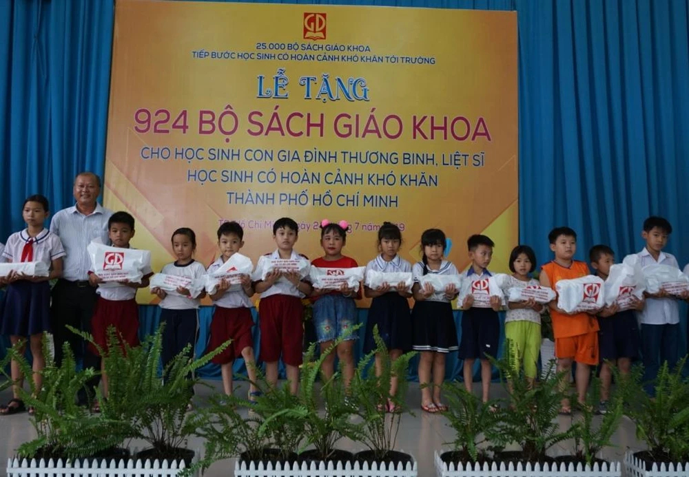 Cùng với việc phát hành và chuẩn bị sách, năm 2019, NXBGD tiếp tục xây dựng và triển khai chương trình tặng 25.000 bộ SGK cho các em học sinh là con thương binh – liệt sĩ, học sinh có hoàn cảnh khó khăn trên cả nước. Riêng tại các tỉnh phía nam, trong tháng 7 và đầu tháng 8, NXBGD sẽ tổ chức nhiều đợt hơn 8.000 SGK cho các em học sinh là con thương binh – liệt sĩ, học sinh có hoàn cảnh khó khăn ở 17 tỉnh, thành phố.