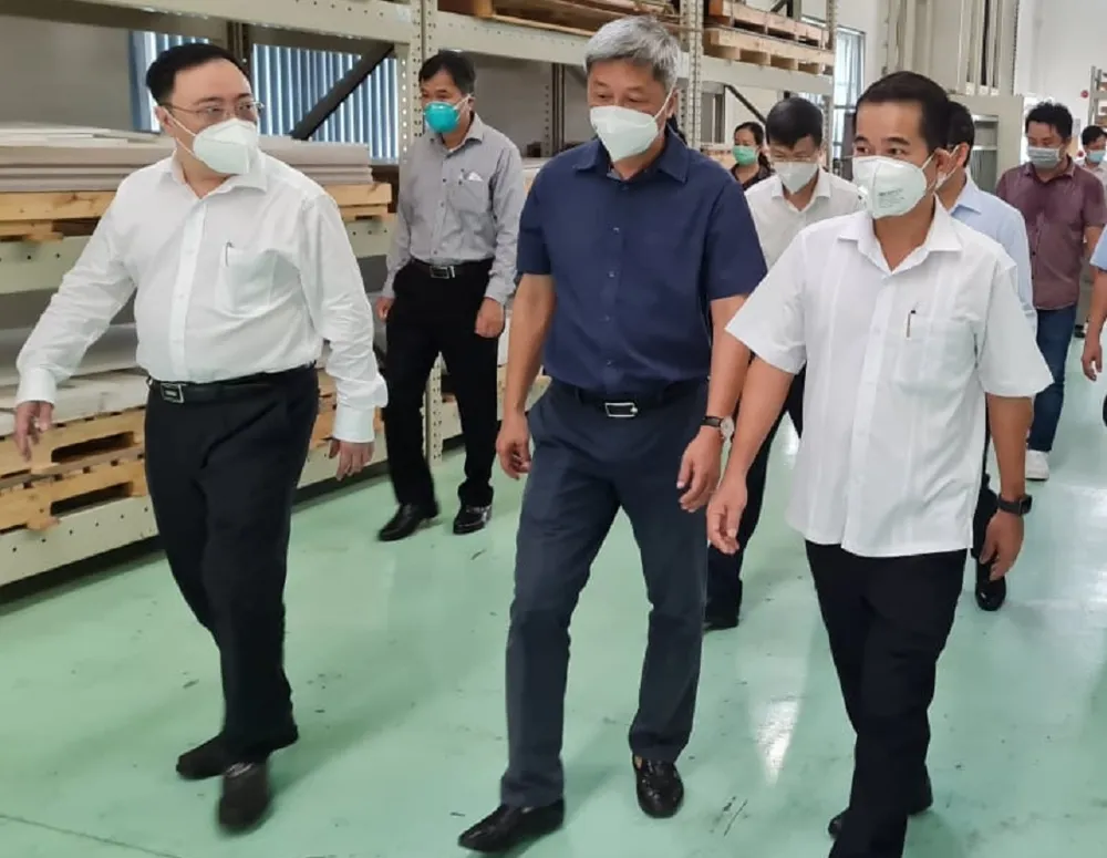 Thứ trưởng Nguyễn Trường Sơn và Đoàn công tác của Bộ Y tế cùng lãnh đạo tỉnh Đồng Nai kiểm tra công tác phòng, chống dịch tại một công ty trong Khu công nghiệp Amata. Ảnh: VH