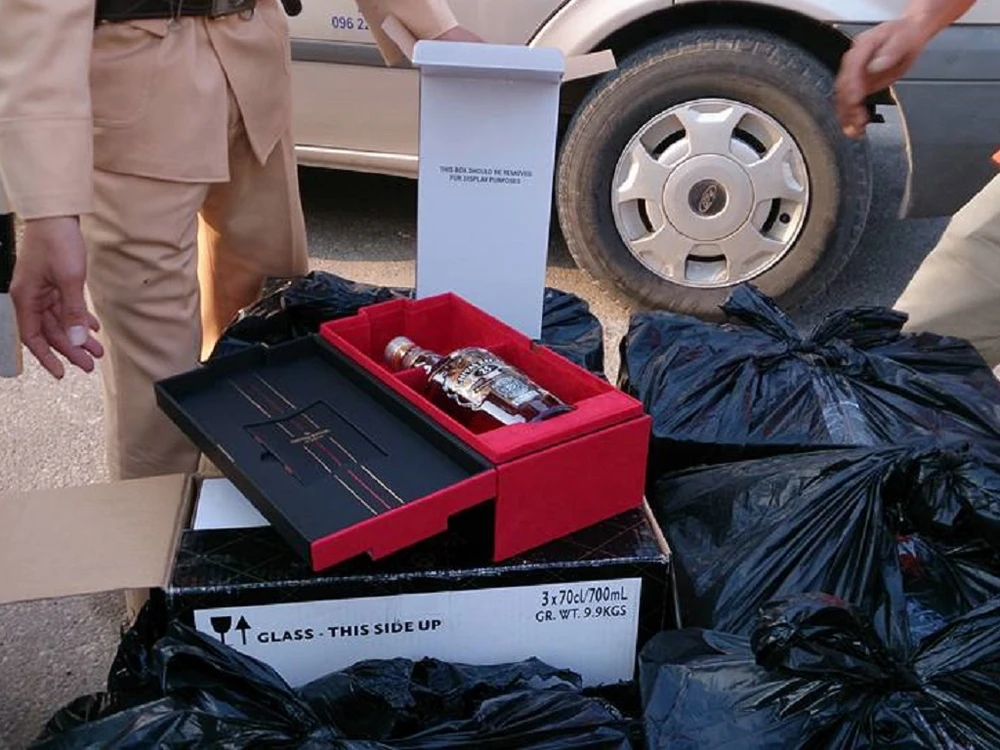 Qua kiểm tra, tổ công tác phát hiện trên xe có nhiều thùng cát-tông, bên trong chứa 114 chai rượu Royal Salute 21 và Chivas 18, trị giá khoảng 232 triệu đồng.