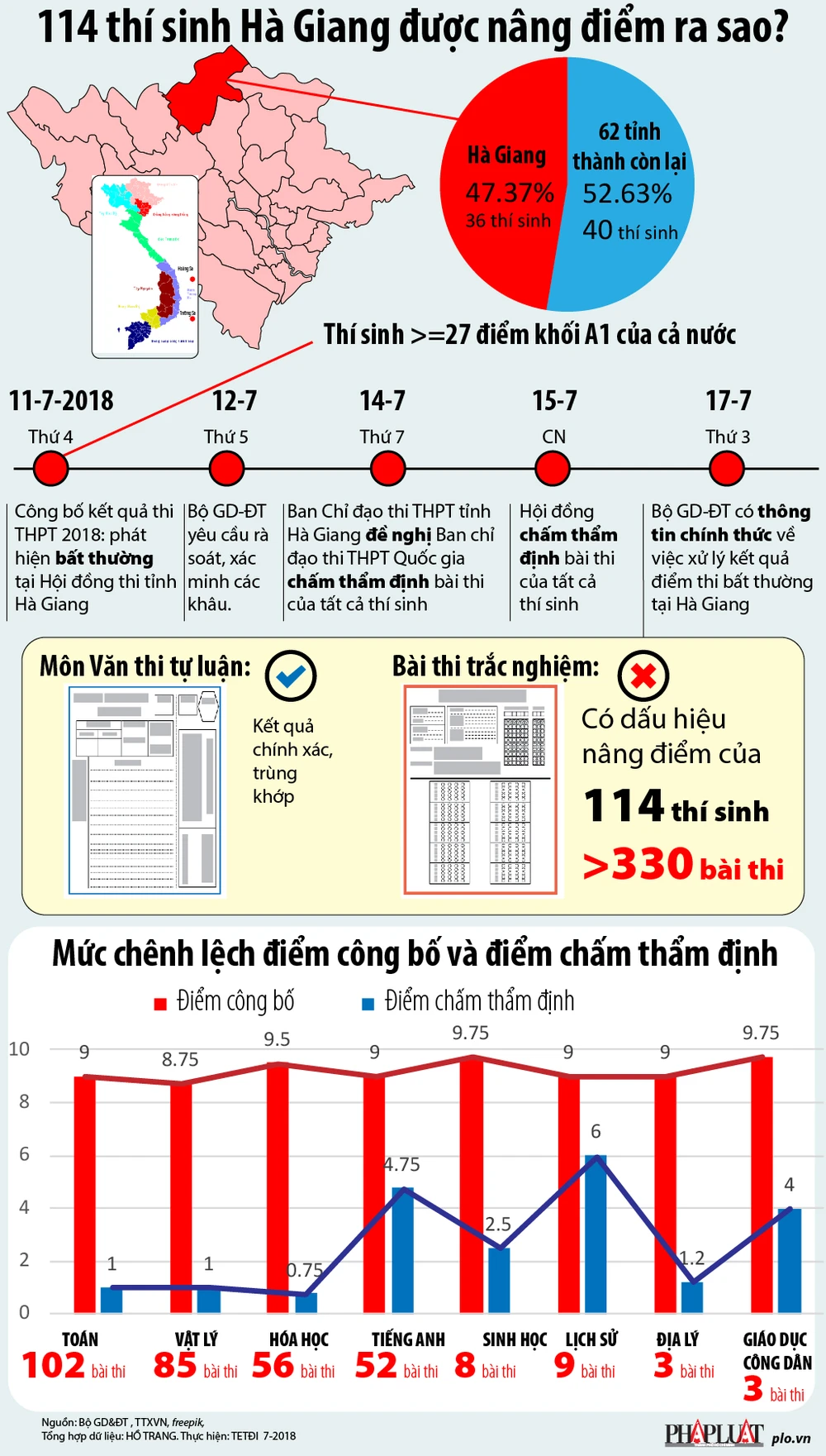(PLO)- Trong vụ gian lận điểm thi ở Hà Giang, có đến 330 bài thi của 114 thí sinh được sửa điểm từ thấp lên cao, có trường hợp nâng lên đến 29,95 điểm.