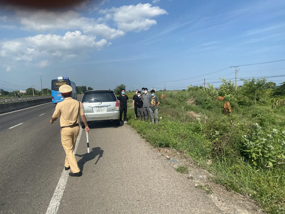 Cùng thời điểm, CSGT Công an tỉnh Bình Thuận phát hiện sáu người trong nhóm trên đi trên một ô tô.