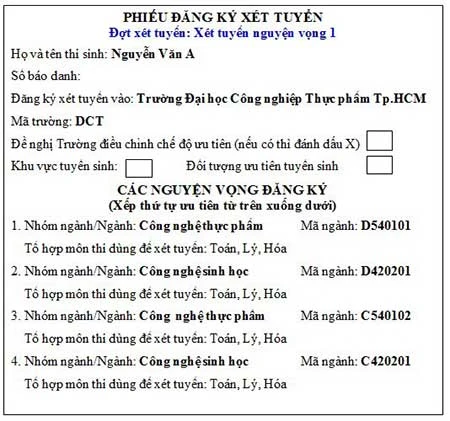 Mẫu phiếu đăng ký xét tuyển NV 1.