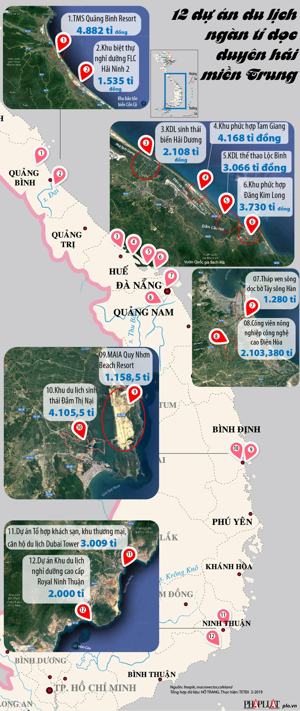 (PLO)- 19 dự án du lịch nằm tại các tỉnh Quảng Bình, Quảng Trị, Đà Nẵng, Quảng Nam, Thừa Thiên Huế, Bình Định, Ninh Thuận vừa được trao quyết định đầu tư với tổng mức đầu tư hơn 36.100 tỉ đồng tại hội nghị thí điểm thành lập Quỹ Hỗ trợ phát triển du lịch tại các tỉnh và Vùng. Dưới đây là 12 dự án quy mô trên ngàn tỉ đồng.