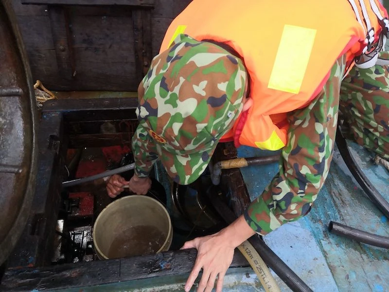 Đồng thời, cán bộ, chiến sĩ Đồn Biên phòng Cù Lao Chàm đã khoá các van chứa khoảng 3.500 lít dầu D.O đề phòng sự cố tràn dầu.