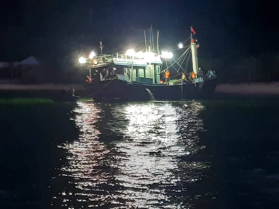 Nhận tin báo, Đồn Biên phòng Cù Lao Chàm đã điều động một ca nô cùng 12 cán bộ, chiến sĩ tiếp cận tàu gặp nạn cùng ngư dân bơm nước, hướng dẫn tàu bị nạn vào khu vực Bãi Bìm (Cù Lao Chàm).