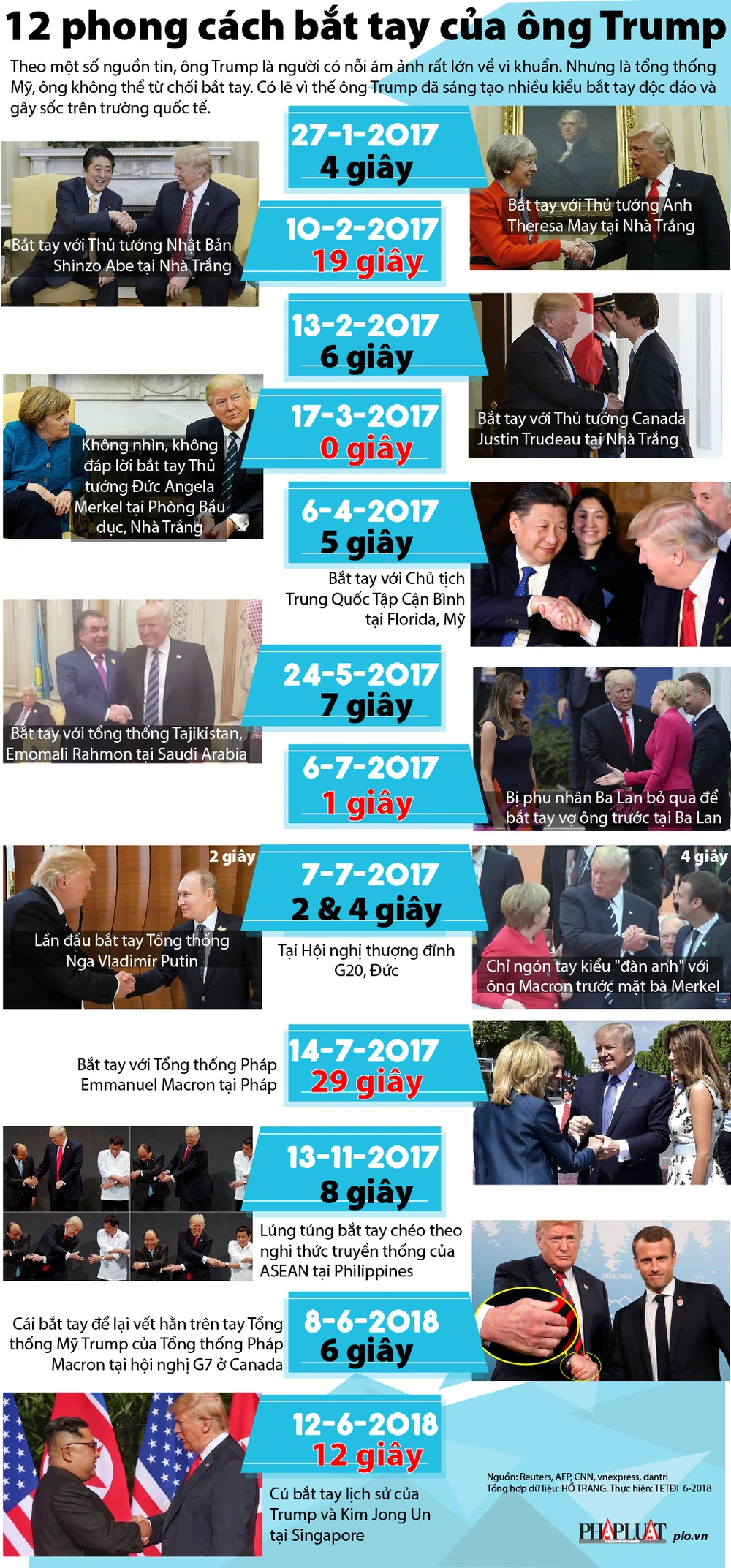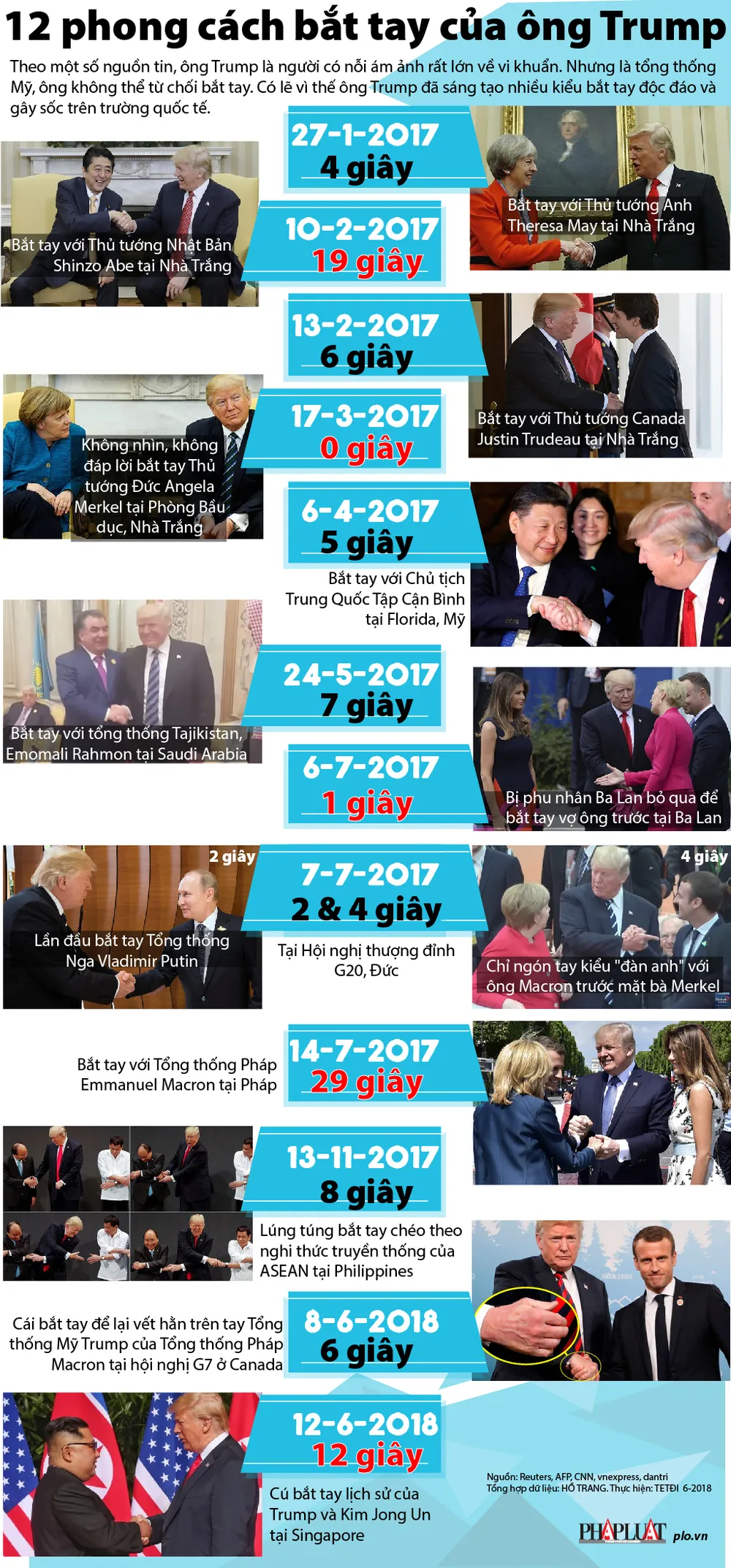 (PLO)- Tổng thống Mỹ Donald Trump luôn có phong cách bắt tay rất khác người, thể hiện rõ cá tính, thái độ của mình...