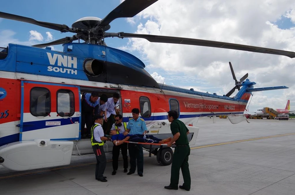 “Tình trạng bệnh nhân rất nặng, nguy cơ diễn tiến xấu dần nên có chỉ định vận chuyển hàng không đưa về đất liền cấp cứu. Do bệnh nhân liệt nửa người phải nên tổ cấp cứu hàng không quyết định cho máy bay bay về với tốc độ chậm và độ cao thấp. Tổ cấp cứu xuất phát từ 1 giờ 10 phút ngày 18-6 và về đất liền an toàn lúc 13 giờ cùng ngày”, BS Hồng cho hay.