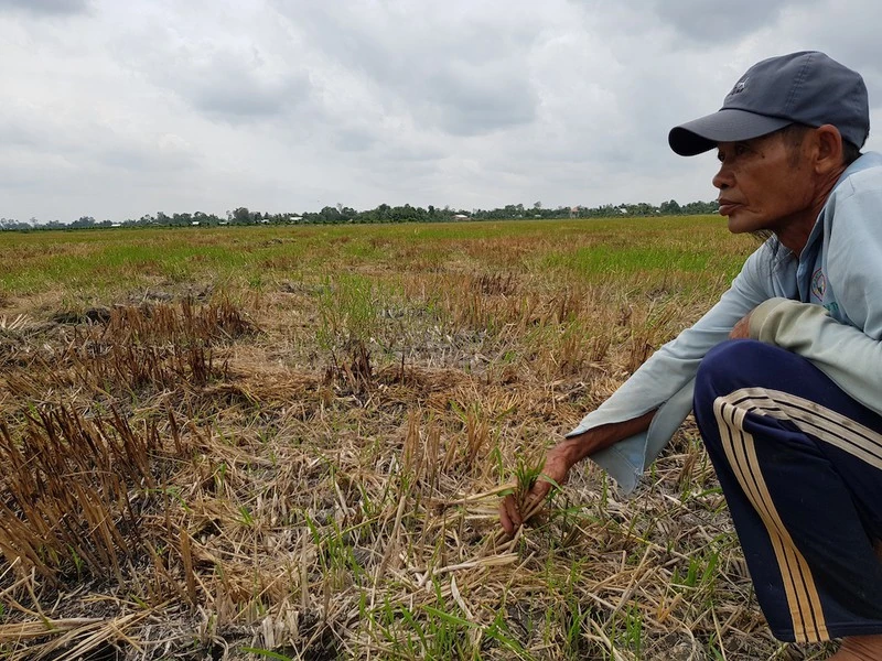 Nông dân Đồng Tháp Mười thẫn thờ trước nạn hạn hán xâm nhập mặn. Ảnh: NAM GIAO