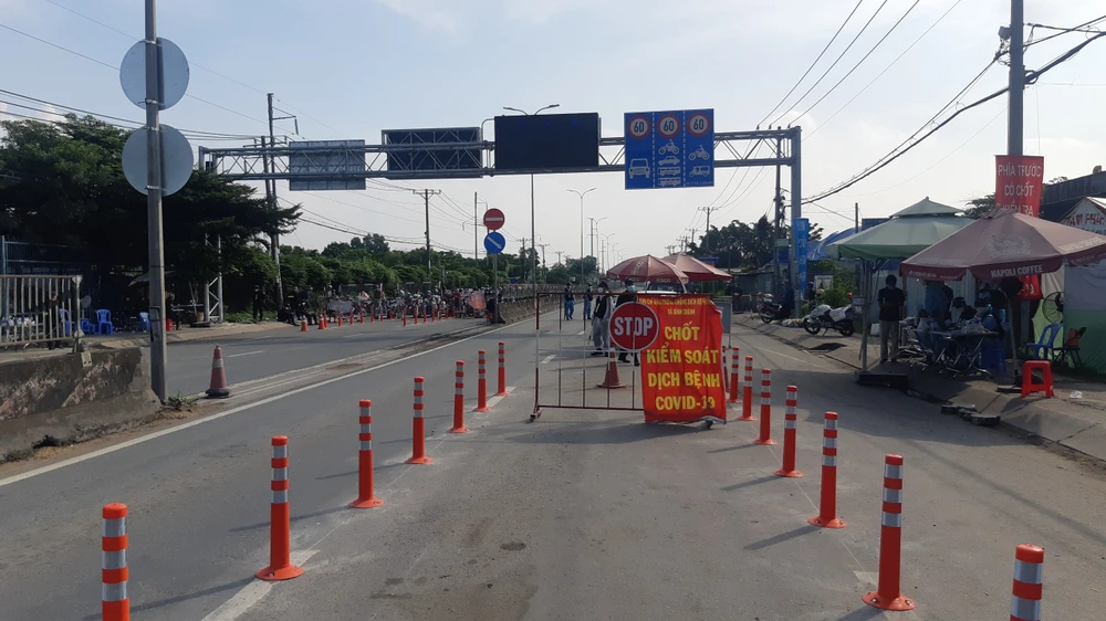 Chốt kiểm soát trên Quốc lộ 1, giáp ranh TP.HCM - Long An. Ảnh: CTV.