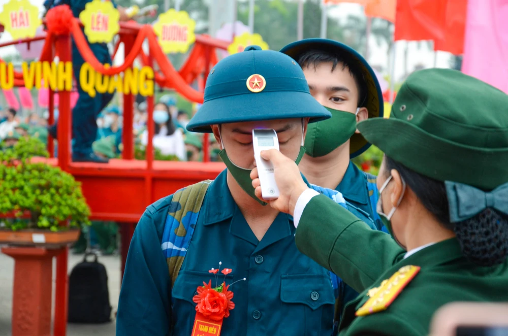 Năm nay, các tân binh đều được lấy mẫu xét nghiệm COVID-19, khai báo y tế kỹ càng và đo thân nhiệt trước khi đường làm nhiệm vụ.