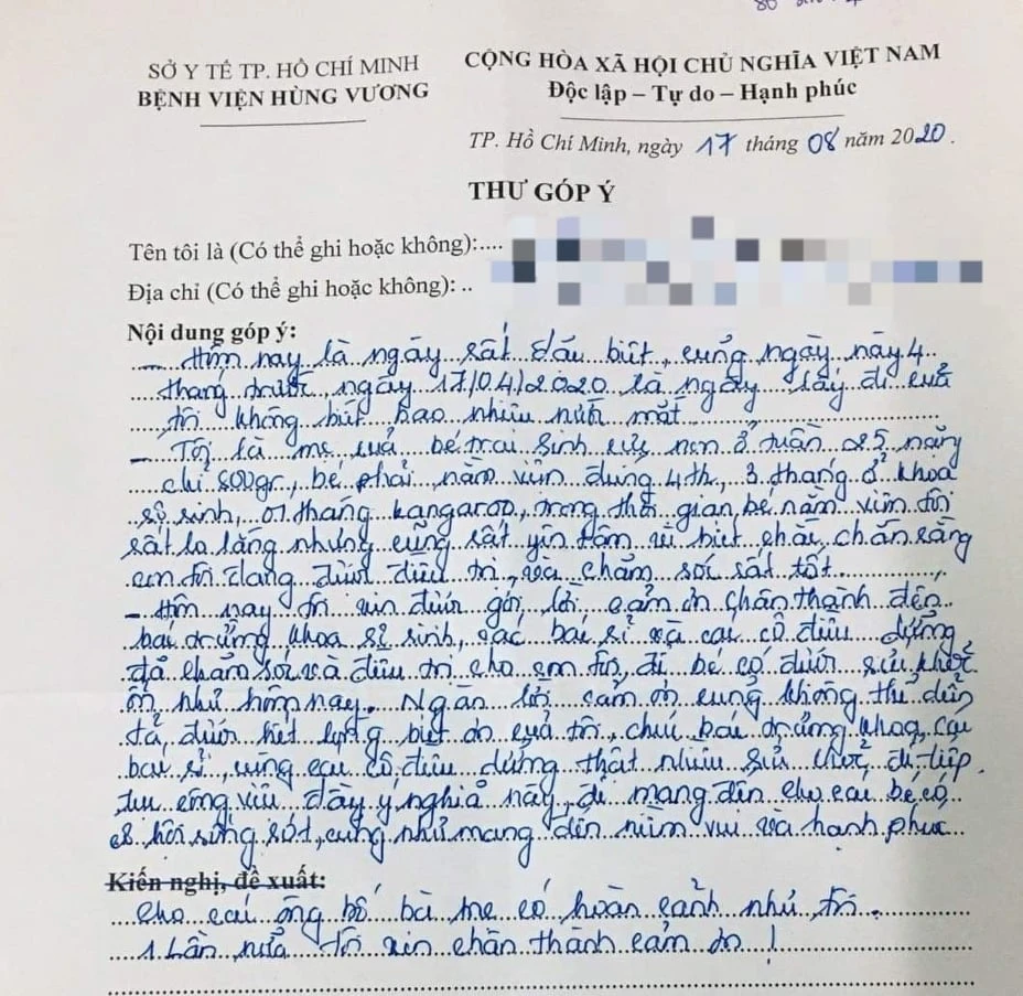 Tôi là mẹ của bé trai sinh cực non ở tuần 25, nặng chỉ 800 g, bé phải nằm viện đúng 4 tháng, 3 tháng ở Khoa Sơ sinh, một tháng ấp kangaroo. Trong thời gian bé nằm viện tôi rất lo lắng nhưng cũng rất yên tâm vì biết chắc chắn rằng con tôi đang được điều trị và chăm sóc rất tốt...Ngàn lời cảm ơn của tôi cũng không thể diễn tả được hết lòng biết ơn của tôi”, sản phụ rưng rưng chia sẻ trước khi xuất viện.