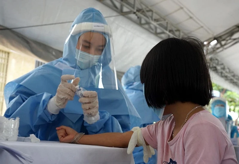 Lấy mẫu xét nghiệm cho người dân tại Đà Nẵng. Ảnh: LÊ BẢO