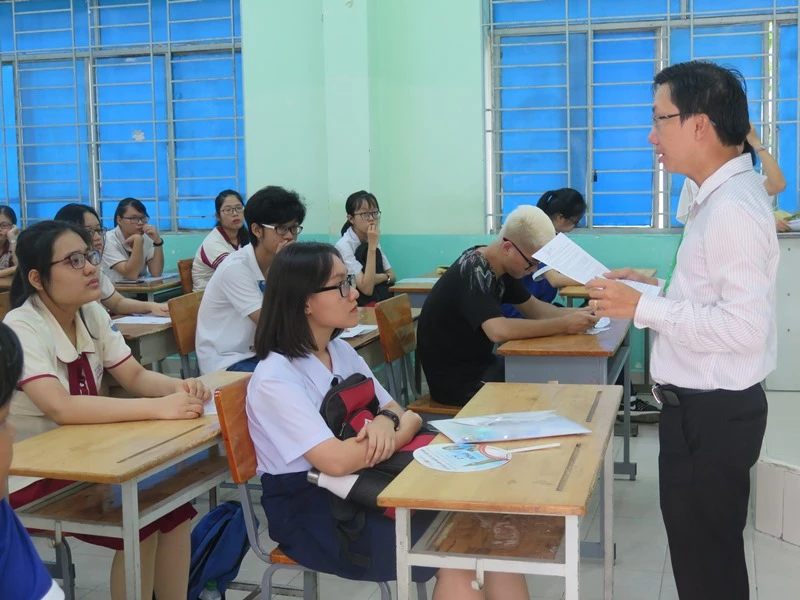 Thí sinh nghe phổ biến quy chế thi trong kì thi THPT Quốc gia năm 2019 tại TP.HCM. Ảnh: PA